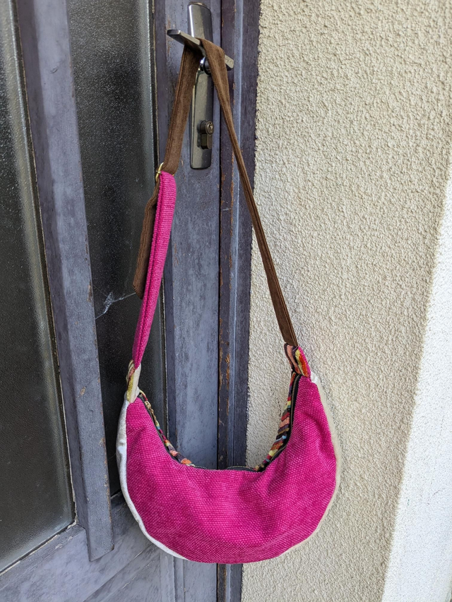 Tissus : velours rayé, velours texturé rose fushia, velours côtelé fin marron