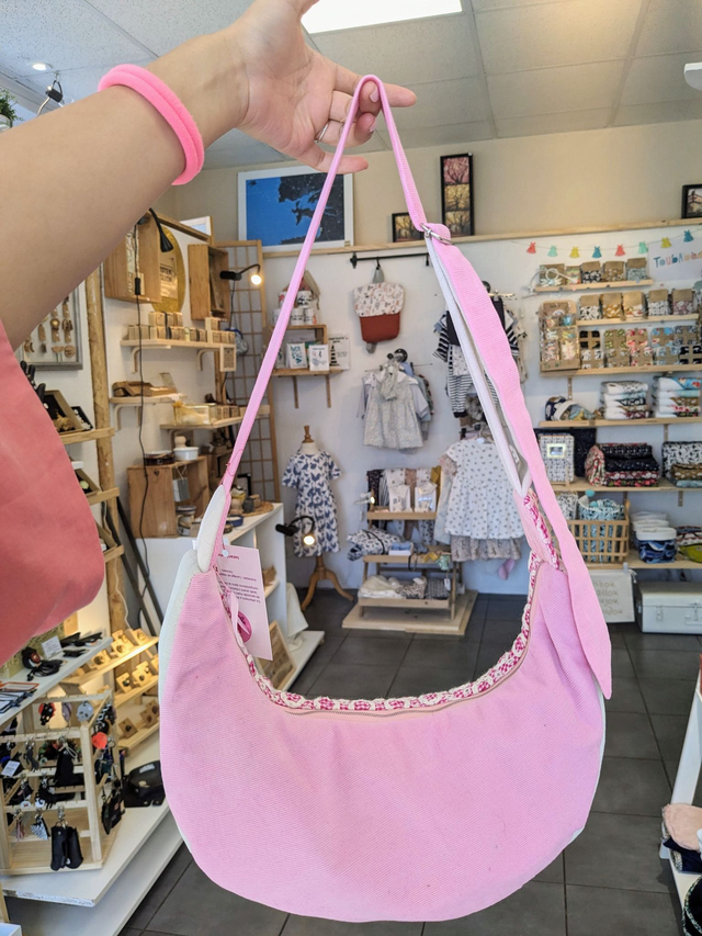 Sac DEMILUNE Velours Rose et Motif Marguerite